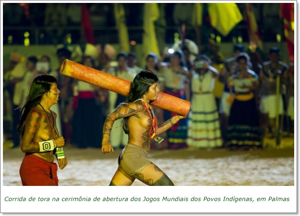 Tinha muita gente curiosa para saber como é a corrida de tora, uma das provas tradicionais dos Jogos Mundiais Indígenas. Os atletas deram uma amostra do que vem por aí nos próximos dias do evento: